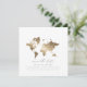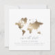 Gold effect watercolor world map wedding save the date card. With a beautiful metallic gold world map, moveable heart to position over your location of choice and space for name location and additional details. Ideal for foreign location weddings or just because you love your state