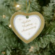 This is an elegant ornament to celebrate a couple's 50th Wedding Anniversary, either at the time of the celebration or for Christmas. It features a white heart framed in faux diamond gems on a faintly striped metallic gold background. Inside the white heart is your text in matching gold, plus twinkling gold star images. The text is fully customizable, so you may make it say whatever you'd like. There is a 2nd text field on the back, which has the same faux diamond border and inside image. This is a special family keepsake gift that will be treasured forever. *Please note - the image is printed, and the ornament does not contain metal, glitter, or gems.*