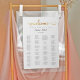 This minimal gold and white alphabetical seating chart is perfect for an elegant and classic wedding. You can change the background color. Just click the customize further link, shown under the text personalization area on the right, and choose your custom color background. This vertical sign can be used to organize your guests alphabetically or by table number by changing the headings. This wedding poster includes enough room for up to about 100 guests. Make room for more (or less) guests by clicking the "customize" button and decrease or increase the size of the font.