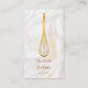 A chic business card featuring an elegant gold whisk on a marble swirls background with stylish gold typography and your QR code on the reverse. Designed by Thisisnotme©