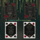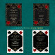 Casino Night, Art Deco Gatsby 20s themed card design. It features vintage art deco style, a Roaring 1920's old Hollywood faux gold frame, fleur-de-lis, playing cards suits (simulating playing cards), on gold white Art Deco pattern background. Special wording are used as in poker game. On the back faux gold Art Deco pattern, QR code and initials. Use Personalize tool to add your information. For more, visit please, my Casino Poker Wedding Collection.