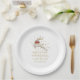 This Christmas paper plate features a stunning gold and white reindeer, adorned with a red Christmas bow, and complemented by sophisticated gold typography. Make it your own by changing customizable text.