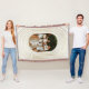 A beautiful family Christmas blanket design that can be customized with your text and family photo. Golden Xmas accents with oval framing and white background colour.