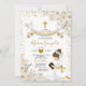 Gold White Flowers Girl First Holy Communion Invitation