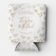 Fun customizable can cooler with gold hearts on a white background. Easy to personalize this can cooler using Zazzle edit tools. Gold hearts and typography. Custom wedding supplies.