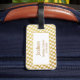 Travel with a little style with these cute Gold & White Houndstooth Pattern with Monogram Luggage Tags. Great for any size bag to easily identify your luggage while travelling. Great gift ideas.