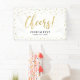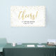 This event banner design features stylish gold confetti and "Cheers" typography on a white background. This banner will be a perfect decoration for a modern chic party. You can customize the text at the bottom of the banner for your events. (Birthday, Retirement, Wedding Anniversary, or any other celebrations)