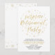 Let's celebrate your special day with this stylish surprise retirement party invitation. This design features chic gold typography and gold sparkle graphics with a white background. You can customize the text and background colour. This invitation will be perfect for a modern gold theme surprise retirement party.