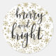 Gold & White Retro Snowflakes MERRY & BRIGHT Favou Classic Round Sticker