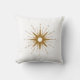 Modern throw pillow features a simple starburst design in a gold and white colour palette. A gold starburst medallion is the central focal point. One design of a coordinating collection.