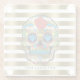 Gold & White Stripes With Red Rose Sugar Skull Glass Coaster