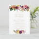 Cette invitation au petit-déjeuner mariage en plumes d'or sauvage est parfaite pour un événement moderne. Le design se compose de plumes sauvages brunes peintes à la main, jaune sauce, blanc, violet, rose, rousse, bordeaux et baies bleues soigneusement disposées en de beaux bouquets.