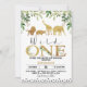 Cute faux gold foil safari animals silhouettes and word wild one themed first birthday invitation for baby boy. This design also features some foliage, black dots and a modern calligraphy word.