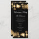 Elegant Christmas Holiday Party invitation with Program and Menu featuring Christmas Holiday Winter Wonderland Snowflakes & Lights in Gold.