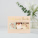 Faux gold foil script cursive elegant lettering on the front of this designer postcard onto which you add your own new baby photo portraits. Holds 3 baby photos. Easily and quickly personalize this designer professionally printed thank you/sip and see postcard here and now by just typing over the example text and adding your own photographs. Elegant, chic, simple and classy gold script/cursive typography.