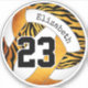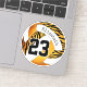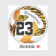 This wild zebra stripes girl's volleyball sticker features a bold zebra stripes accent pattern on four of the volleyball's panels - the zebra stripes panels plus three other panels have an orange/gold background that contrasts with the remaining white volleyball panels - customize with player name and jersey number - by katz_d_zynes