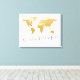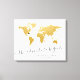 Faux gold world map destination wedding guest book alternative signature canvas print for an elegant travel theme reception or party. Move the heart to any location by clicking 'customize further' - the fonts and colours can also be edited to work with any colour scheme.