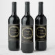 Stylish and elegant gold holiday wreath wine label that can be personalized.