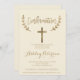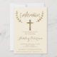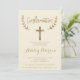 Faux gold foil typography elegant yellow with gold cross confirmation. A modern baptism party invitation with this modern, simple, elegant and chic faux yellow gold brush hand lettering typography on a yellow background. Perfect for simple, elegant and modern party. If you need any text changed and customized don't hesitate in contacting me!