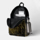 Gold yellow faux glitter sparkles and black printed backpack