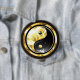 Jewellery, gold and black yin yang symbol on a black background. Gold yin yang.