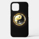Jewellery, gold and black yin yang symbol on a black background. Gold yin yang.