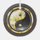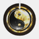 Jewellery, gold and black yin yang symbol on a black background. Gold yin yang.