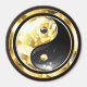 Jewellery, gold and black yin yang symbol on a black background. Gold yin yang.