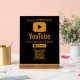 Elevate your YouTube channel's presence with this sleek and modern acrylic sign. Featuring a striking gold and black design, this sign prominently displays "Like & SUBSCRIBE" with the iconic YouTube logo and a "SUBSCRIBE" button graphic. Below, a QR code allows for seamless scanning, directing viewers directly to your channel. This elegant piece is perfect for displaying at events, on your desk, or in your studio to encourage audience engagement and growth. Make a professional statement and let your viewers easily connect with your content.