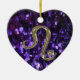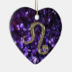Gold Zodiac Sign Leo on Purple Glitter Ornament. Colourful astrological heart shaped ornament in sparkling purple with metallic gold trim astrological symbol for Leo. A great gift for your favourite Lion this holiday season.