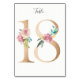 Golden number with soft pastel floral embelishment table number card. Personalize text font style, size, and colour.