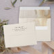 These elegant wedding envelopes feature a soft, neutral beige solid colour exterior, with a modern faux gold abstract design on the interior. Your return address is pre-printed on the envelope flap, and the front features classic swirly calligraphy.
