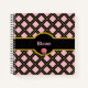 Elegant golden and black diamond pattern on pink background Notebook. Bloom text can be customized.
