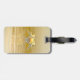 Luggage tag with my original design of two dolphins and a golden heart on shining waters. Text says "50 Years".