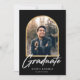 Golden Arch Photo Frame, graduation announcement card. Modern brush script "Graduate" overlay on classic black backgrounds.