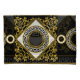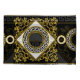 Baroque elegance, golden elements on black for a regal feel.