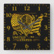 Golden Bison Illustration With USA Map and Flag Square Wall Clock