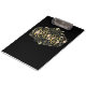 A sleek and elegant "Happy" design featuring ivory lettering accented by thin, sophisticated gold swirls and dots. This minimalist yet classy artwork is perfect for a refined and timeless aesthetic on a dark background.