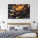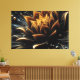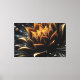 This captivating piece of wall art features a digitally crafted flower that radiates elegance and mystery. At the heart of the composition is a bloom with golden petals rendered in exquisite detail. Each petal glows with a metallic sheen, revealing delicate patterns that convey both precision and organic grace. The flower appears to hover in space, surrounded by swirling dark waves and tendrils that evoke movement and depth.
