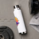 This boho mandala mountain design blends strength and stillness into a striking graphic with a mountain peak that rises beneath radiant, detailed sun-like rays. The warm golden and pink tones create a mountain sunset reflection, giving it calming, golden hour energy. This water bottle is perfect for anyone drawn to mountain sunsets, hiking, yoga, and mindful living.
