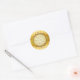 Celebrate the 50th anniversary couple with a sticker that celebrates this achievement in style. Faux golden bokeh images sprinkle down against a golden gradient background. The main text is highlighted in an ornament held on by a gold ribbon image. Great as envelope seals or favours. Available in alternate colours with matching products.