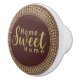 Golden Border Arabesques Floral Elements on Ceramic Knob - This product boasts golden circular border with arabesques floral elements nestled against dark red background. Note: The text field on this product is customizable - You can remove it, replace it, or keep as is. Should you choose to edit simply click PERSONALIZE to reveal the editable field - then edit accordingly.