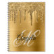 Golden Brushed Foil Glitter Drip Fancy Monogram Notebook