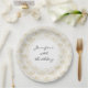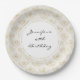 Paper plates with an elegant pattern with gold coloured bumble bees in a repeating pattern on a cream coloured background.