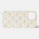 A phone case with an elegant pattern with gold coloured bumble bees in a repeating pattern on a cream coloured background.
