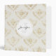 A binder with an elegant pattern with gold coloured bumble bees in a repeating pattern on a cream coloured background.