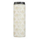 Water bottle with an elegant pattern with gold coloured bumble bees in a repeating pattern on a cream coloured background.