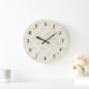 A clock with an elegant pattern with gold coloured bumble bees in a repeating pattern on a cream coloured background.