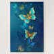 Golden Butterflies on a Blue Background Jigsaw Puzzle