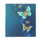Flying gold, jewellery butterfly on blue textural background. Design with butterflies.